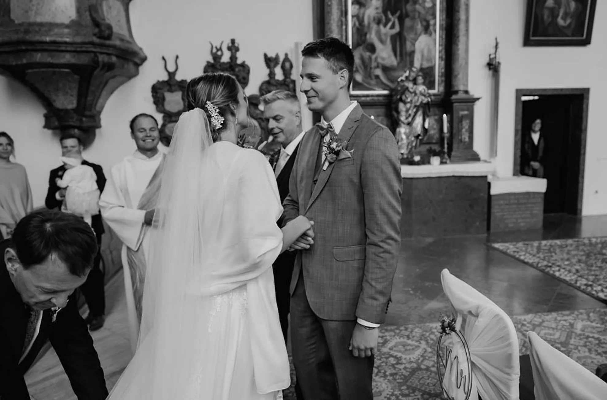 Die Hochzeit von Julia und Alex war von Anfang an etwas ganz Besonderes. Wir starteten beim Getting Ready der Braut, bevor die beiden sich bei einem emotional bewegenden First Look zum ersten Mal an diesem Tag begegneten. Die Trauung in der Kirche war emotional, authentisch und wunderschön – ein Moment, der die beiden und ihre Gäste bewegt hat.