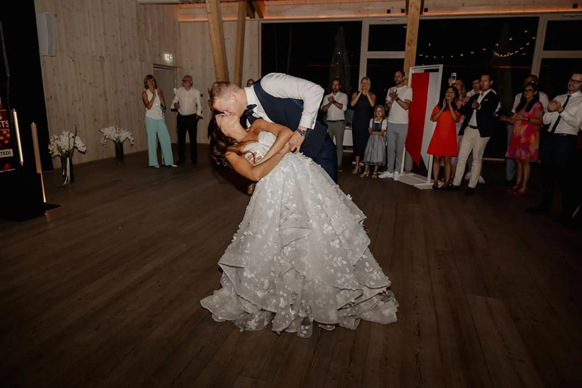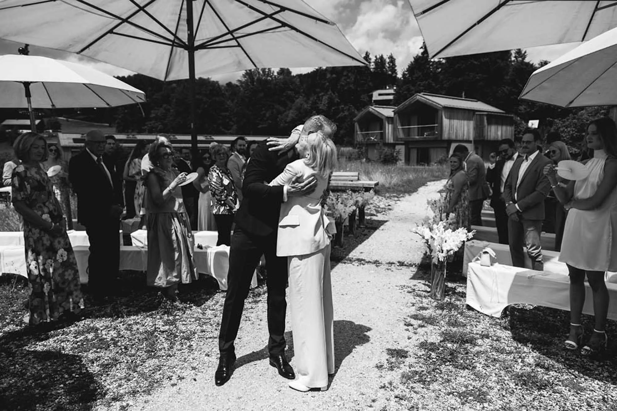 Am Hochzeitstag selbst wurde es dann richtig emotional: Vom liebevollen Getting Ready über die freie Trauung voller Gefühl – Gänsehautmomente inklusive – bis hin zur Eröffnung des Abendprogramms und der Tanzfläche. Die Abendstimmung beim Paarshooting hat diesen besonderen Tag nochmals wundervoll abgerundet.