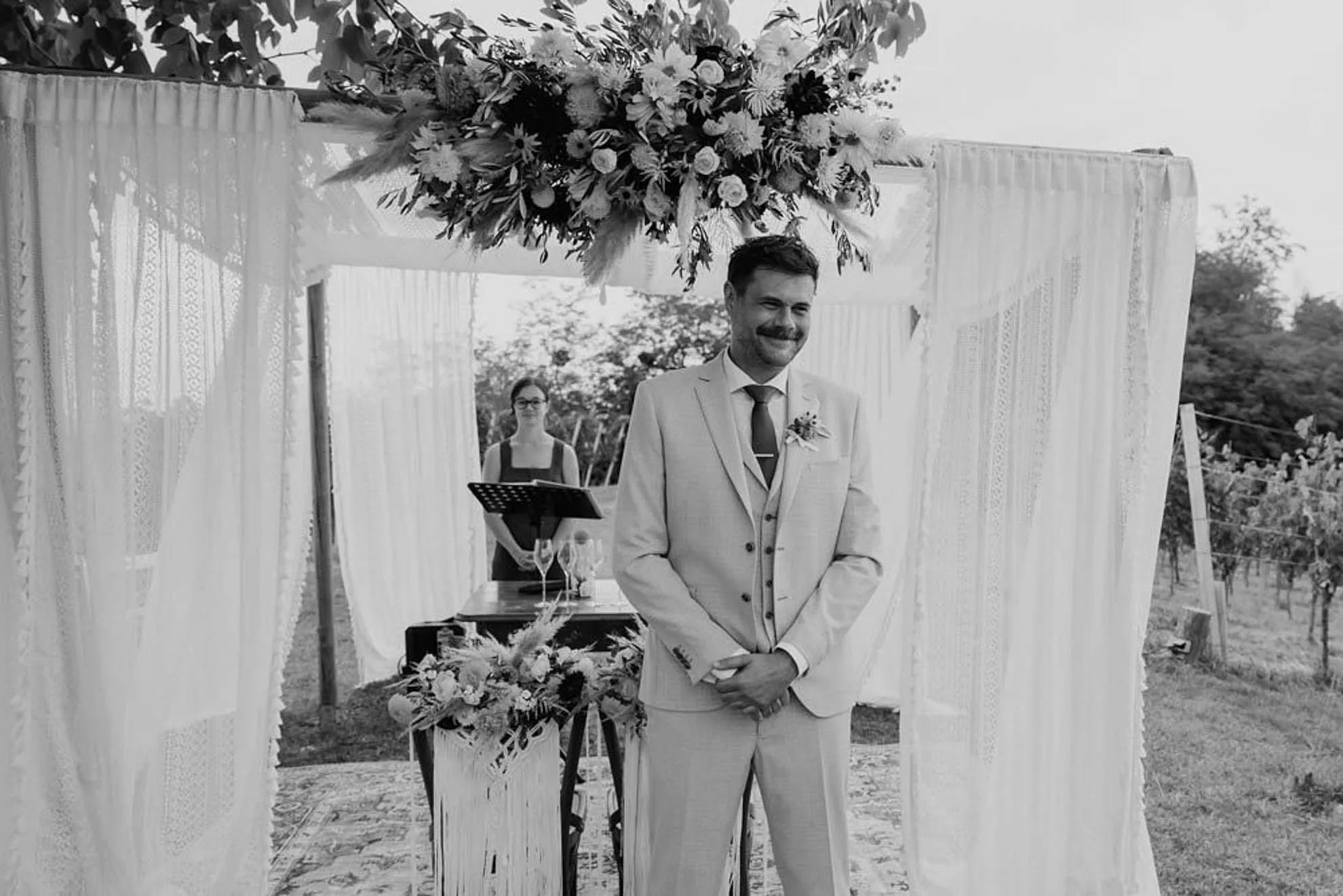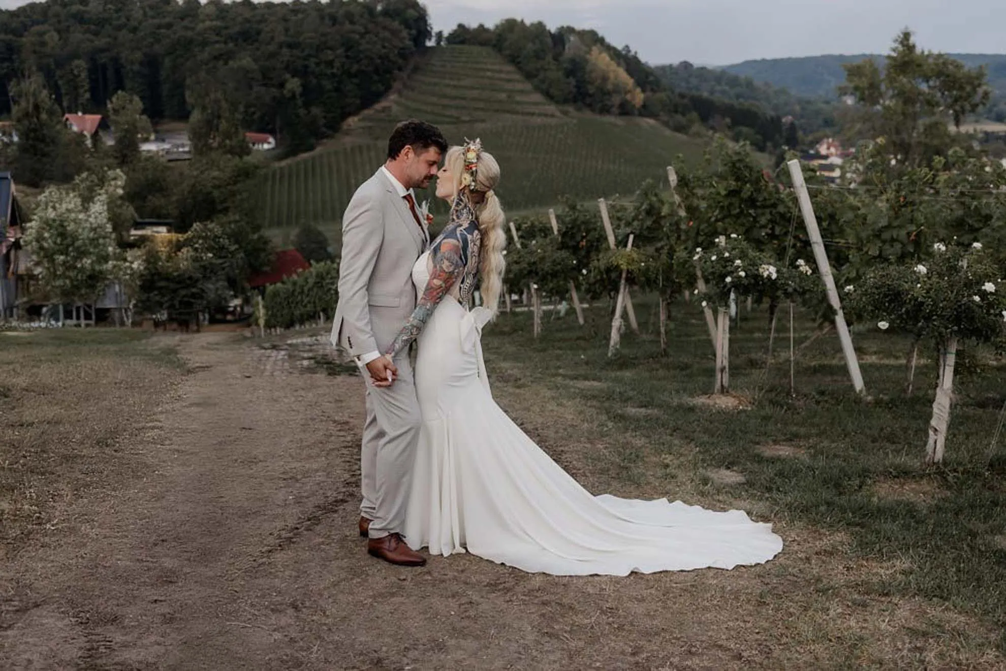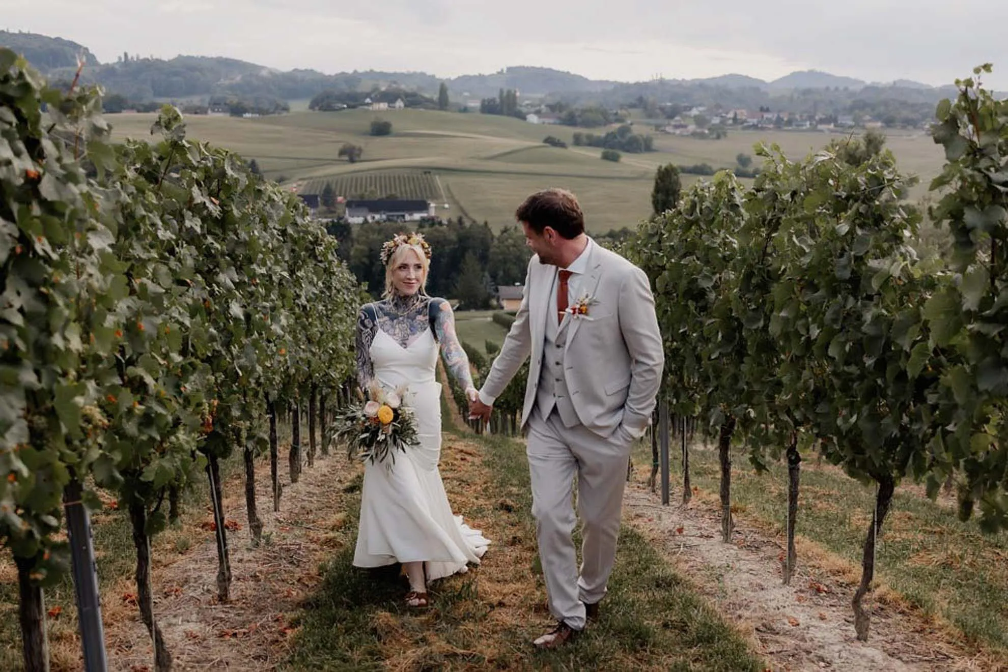 Das Weingut Holler in der Steiermark ist ein Ort, der sofort verzaubert – umgeben von malerischen Weinbergen, warmem Licht und einer Atmosphäre, die ganz viel Ruhe und Verbundenheit ausstrahlt. Der perfekte Rahmen für eine freie Trauung mitten in der Natur. Für Lilly und Hanspeter war genau das der richtige Ort, um ihre Liebe mit ihren Liebsten zu feiern. Herzlich, vertraut, im kleineren Rahmen.